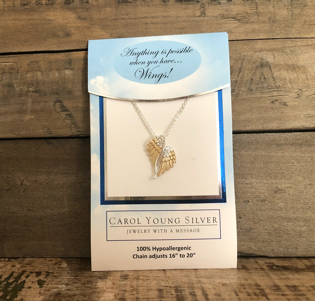 Angel Wings Necklace, Petite / 2 Tone on CARD