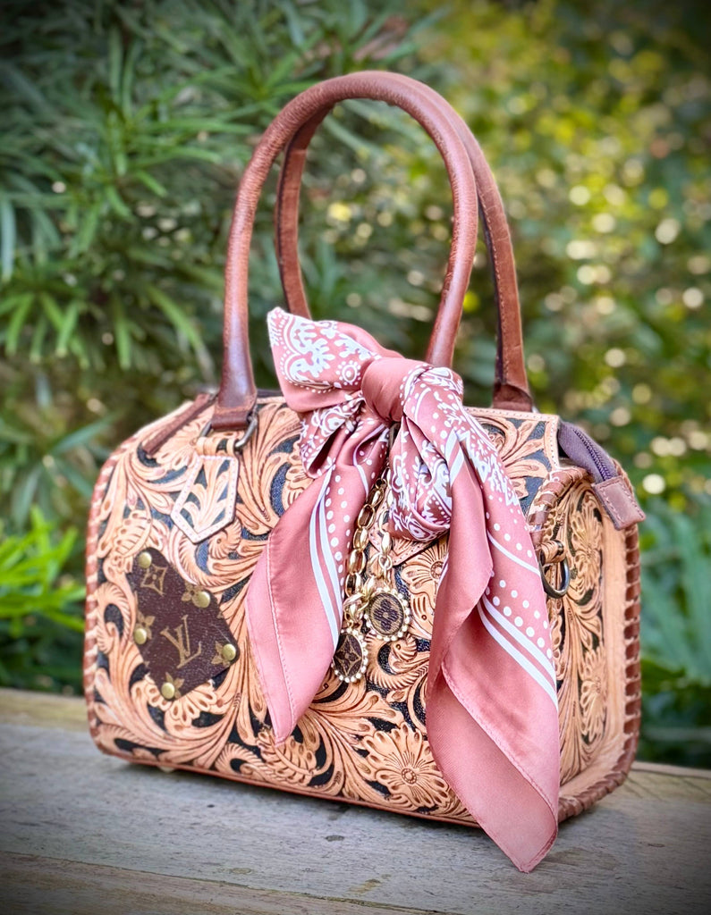 Upcycled LV Tooled Leather Speedy Crossbody Bag Western