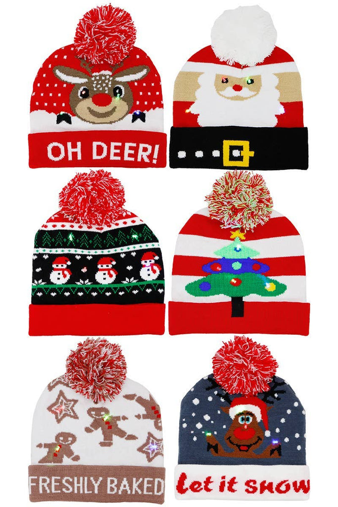 Big Kids Christmas Led Light-up Single Pom Beanie: ASSORTED / ONE SIZE