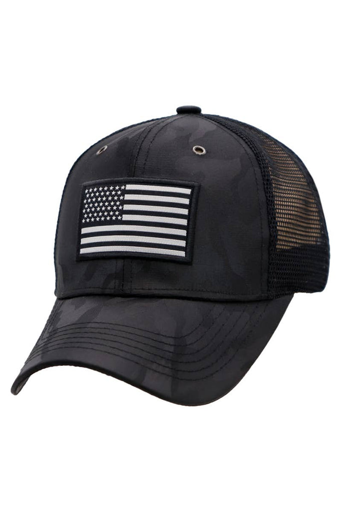 American Flag Camo Mesh Trucker Hat: Black Camo