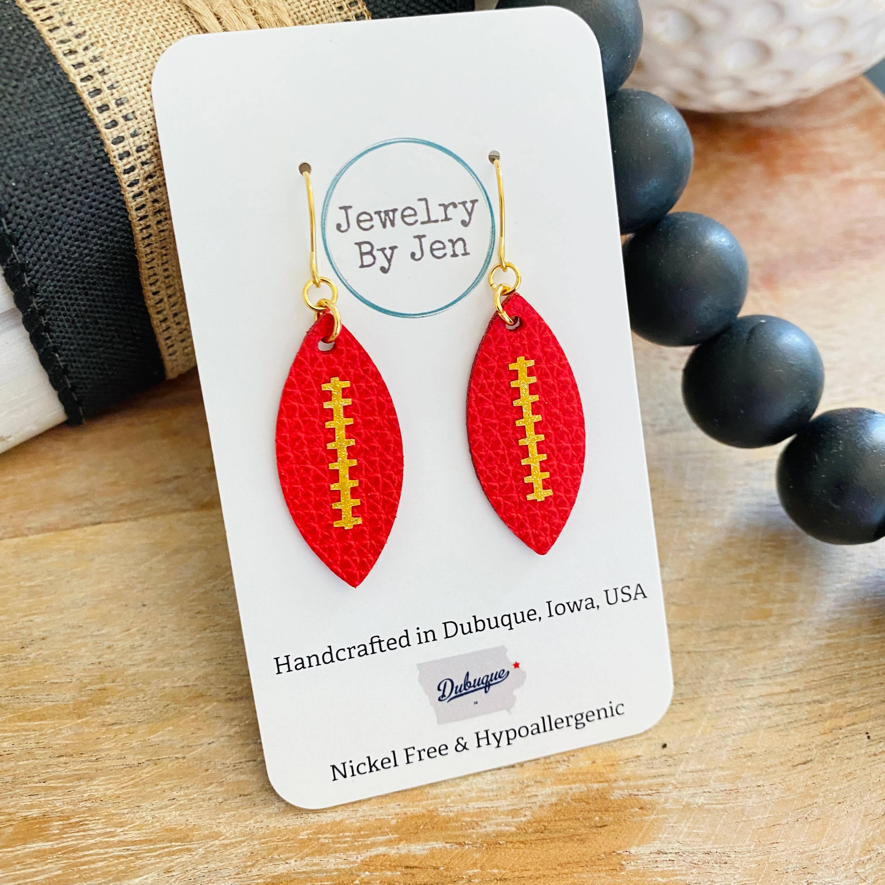 Football Earrings (Small): Red w/Gold Stitches is backordered and will ship as soon as it is back in stock.