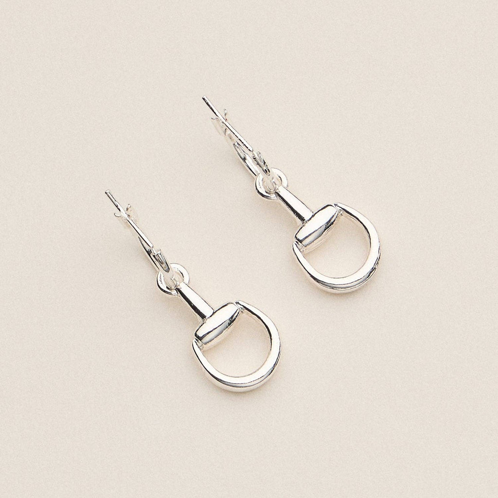 Chic with an equestrian twist, these 18K gold dipped bit charm hoop earrings blend elegance with a hint of edge. Featuring a petite hoop and a detailed horse bit-inspired charm, these earrings move effortlessly from casual to classy. Available in gold and silver finishes, they bring timeless charm to any jewelry collection.