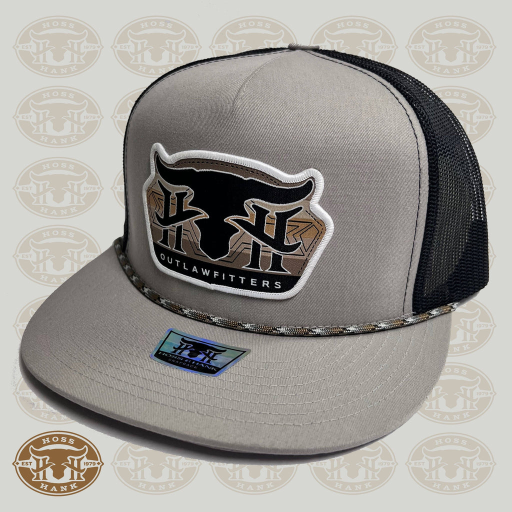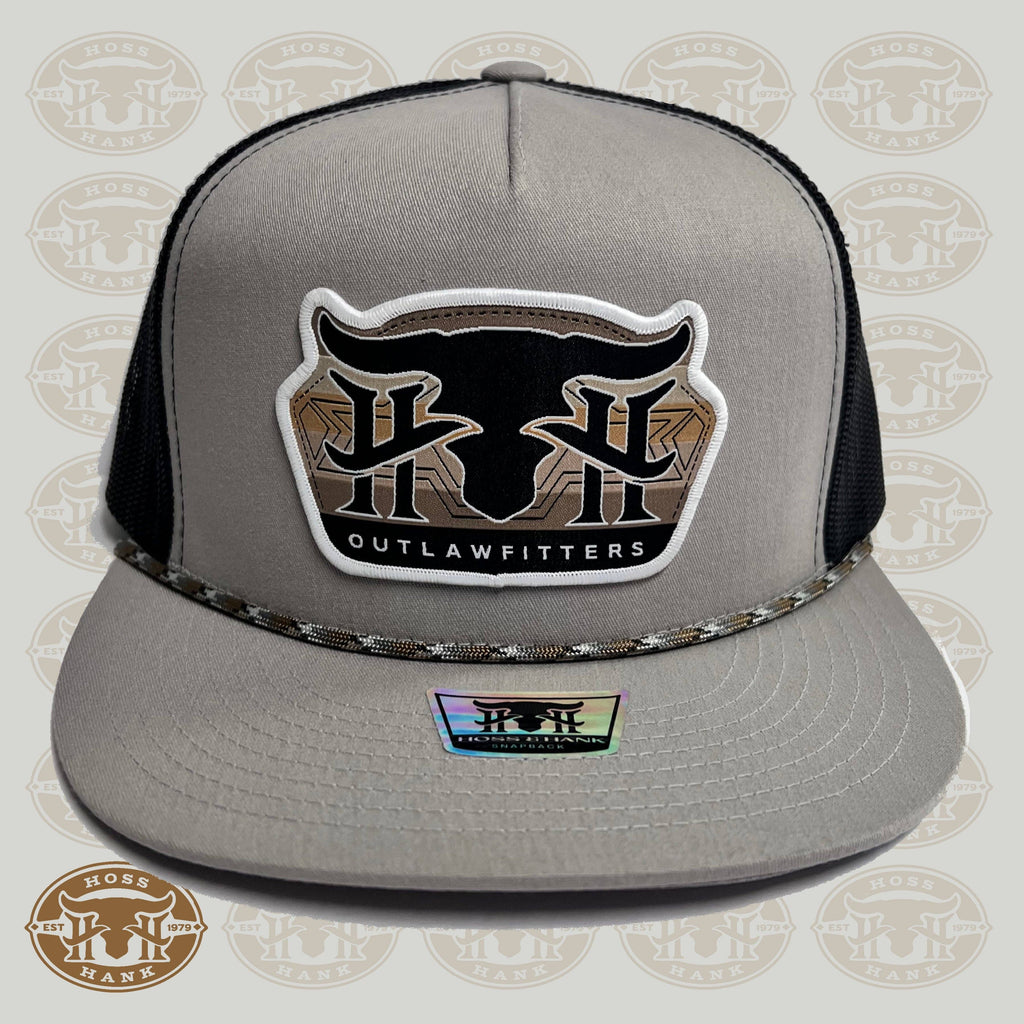 This tall boy SnapBack is designed in silver and black with a stylish rope detail and features the Hoss&Hank outlawfitters logo. Expertly crafted and designed with a stylish rope detail. Perfect for everyday wear or as a unique addition to your hat collection.