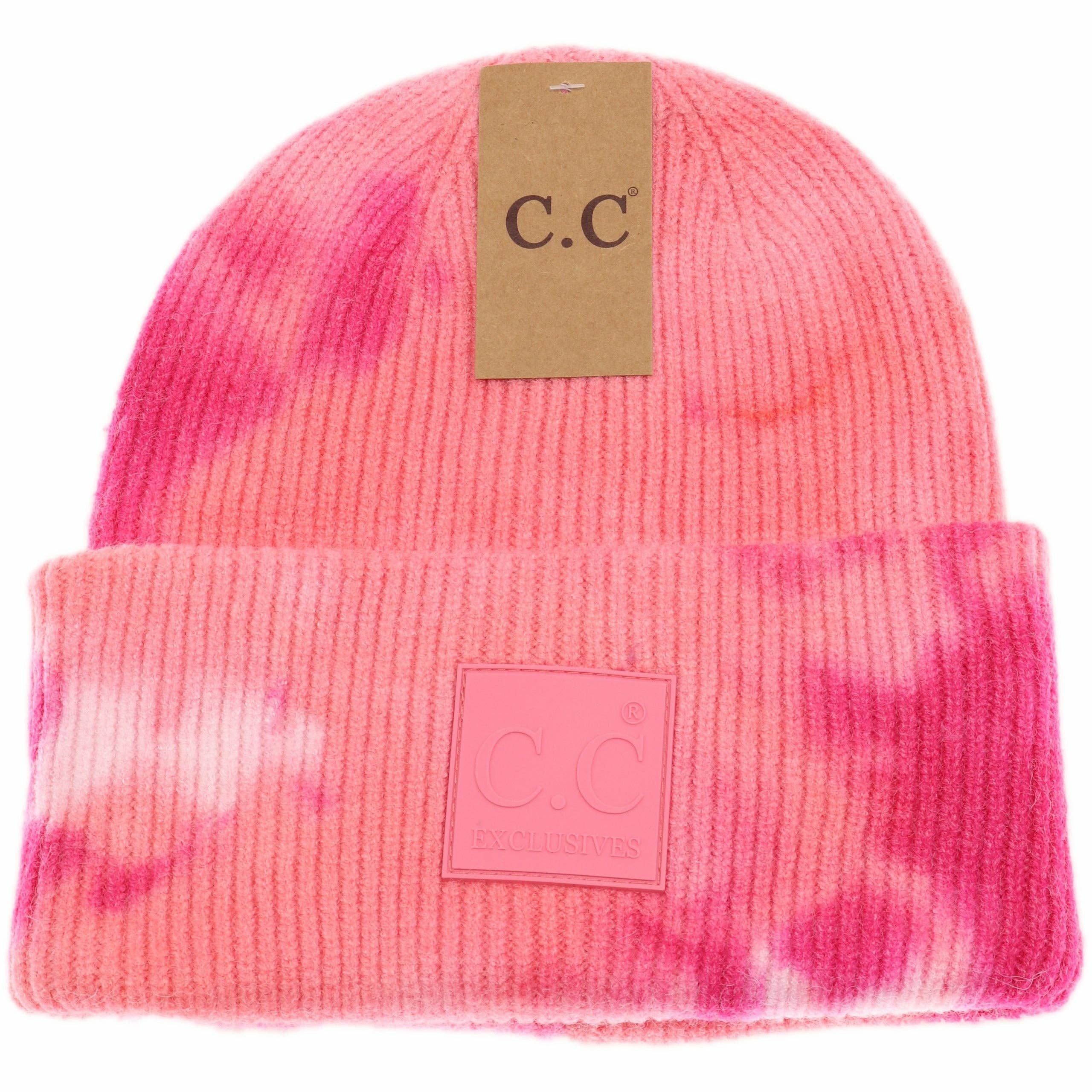 Tie Dye Beanie with Rubber Patch HAT7380: Black/Hot Pink