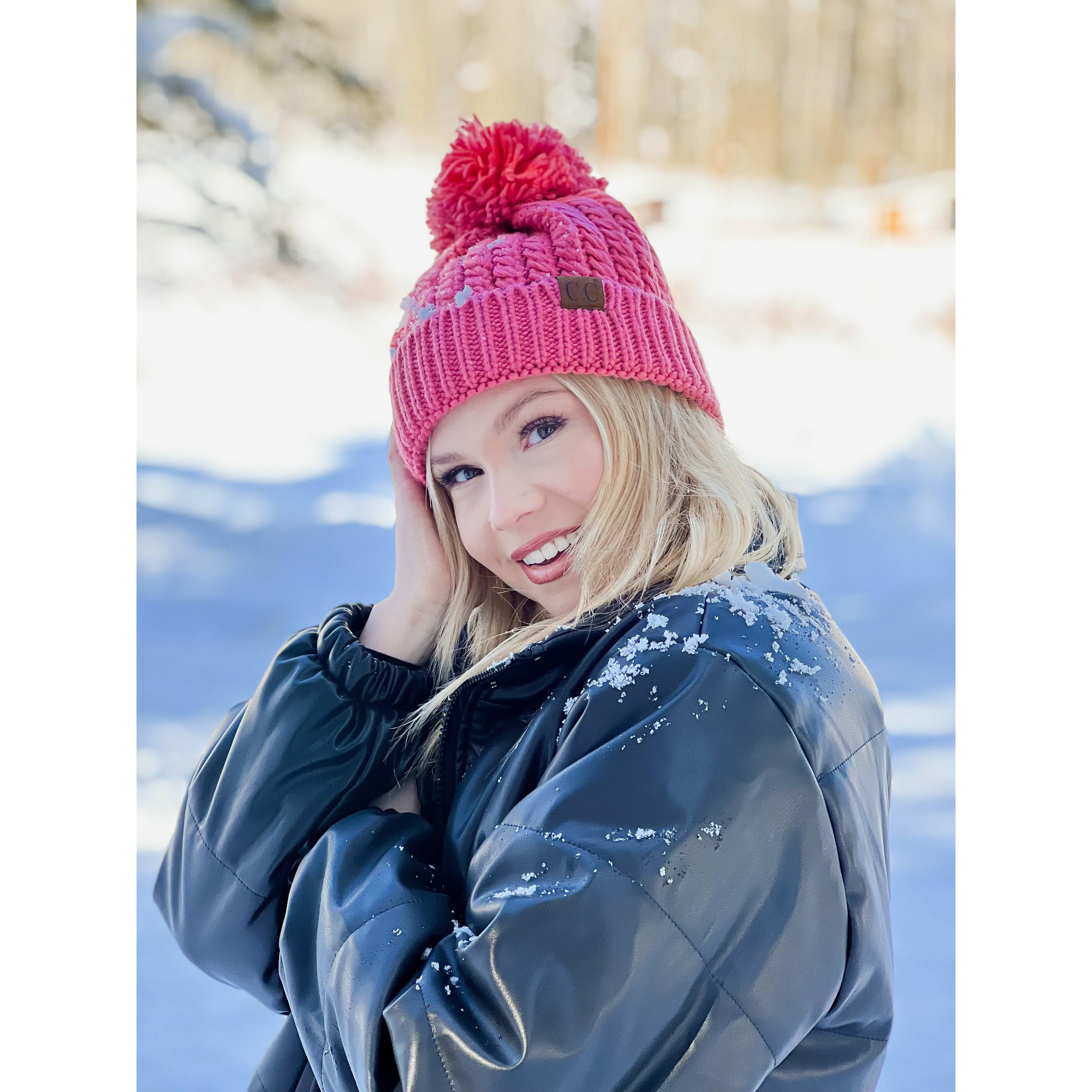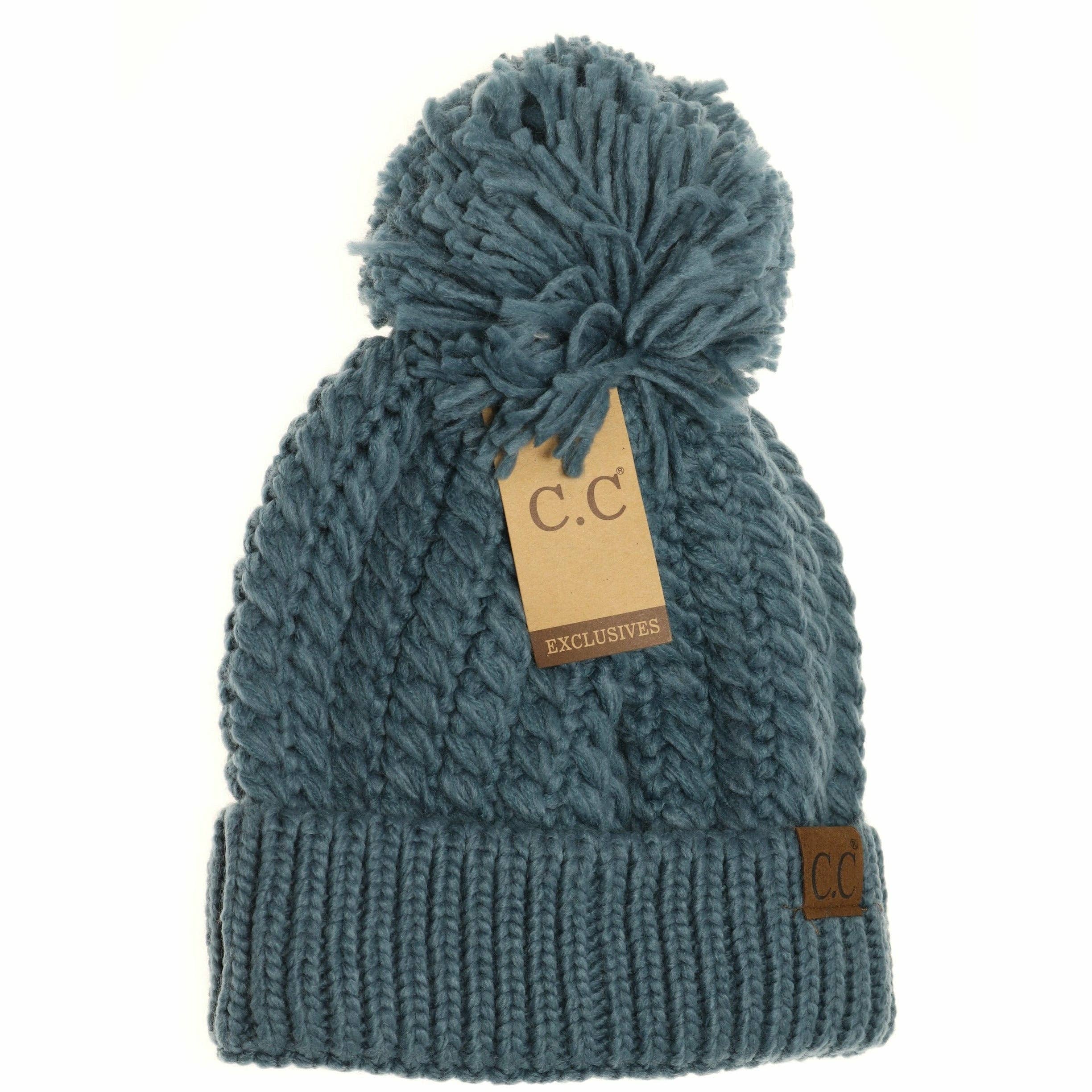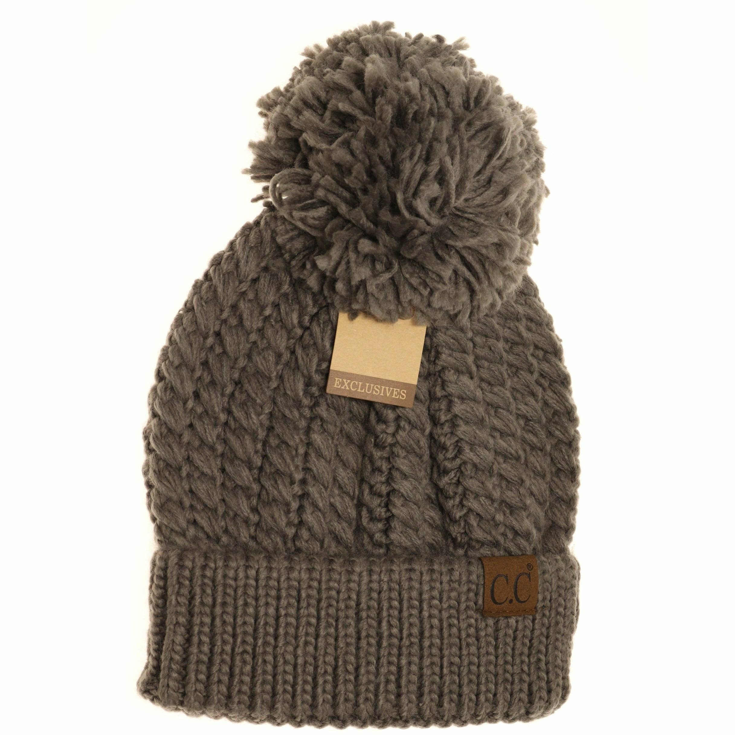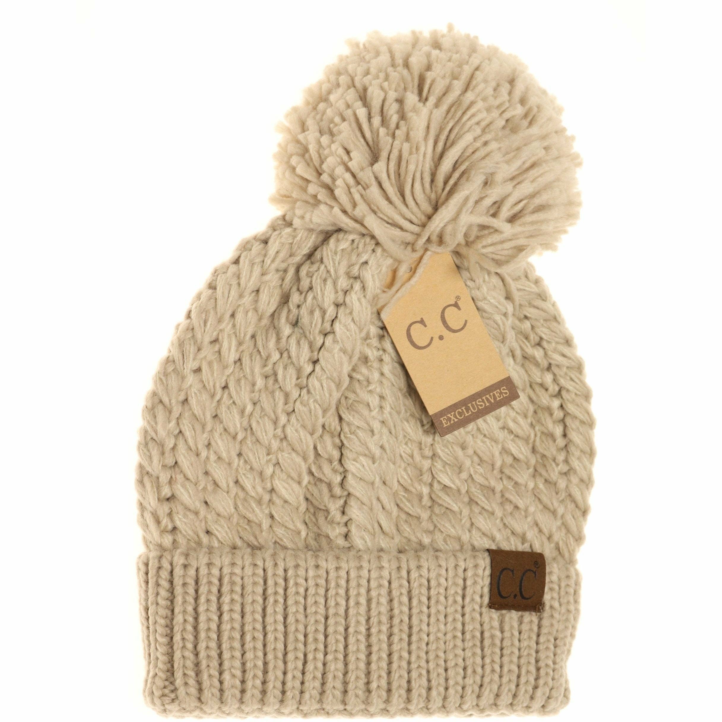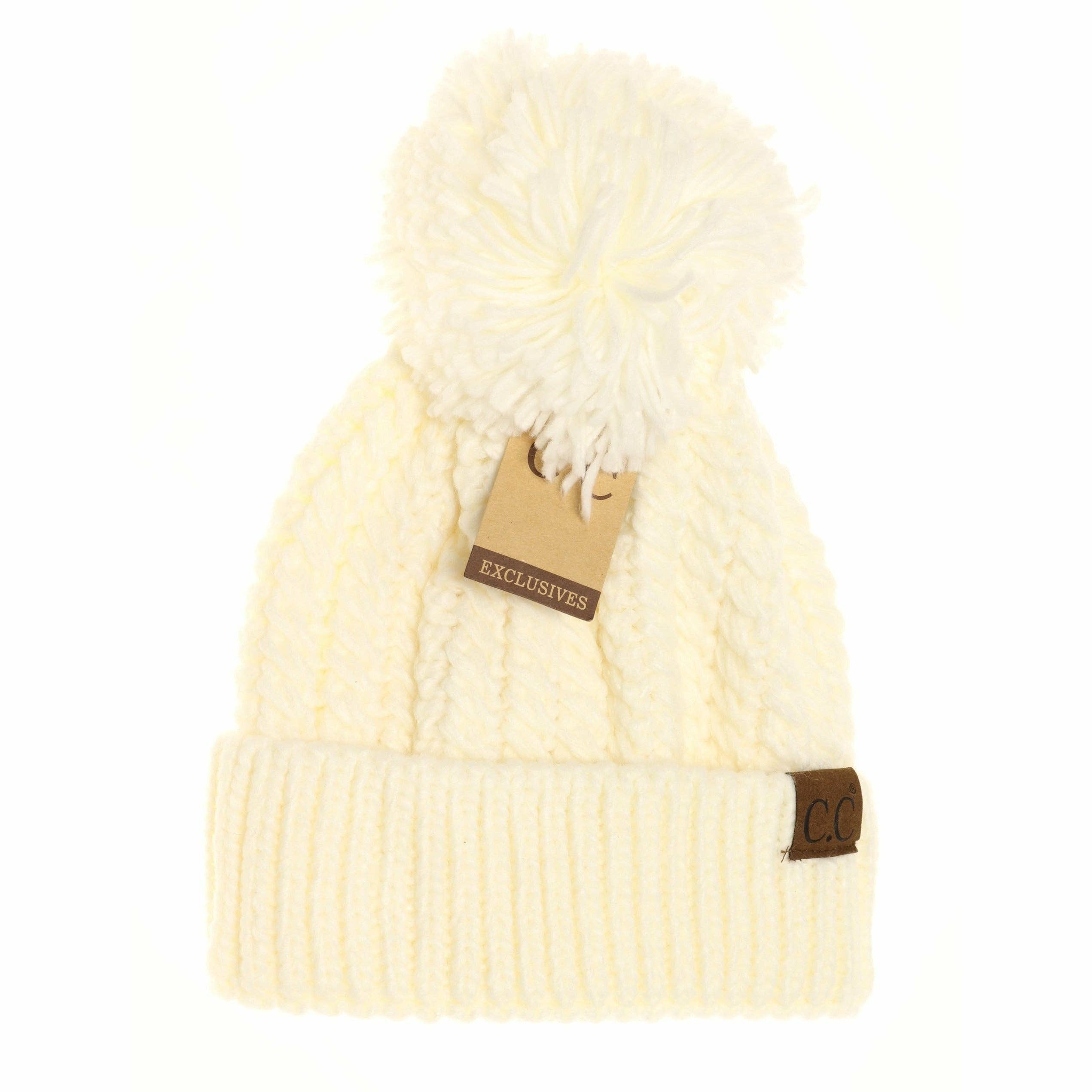 A twisted mock cable knit design with a yarn pom makes this beanie classy and stylish!