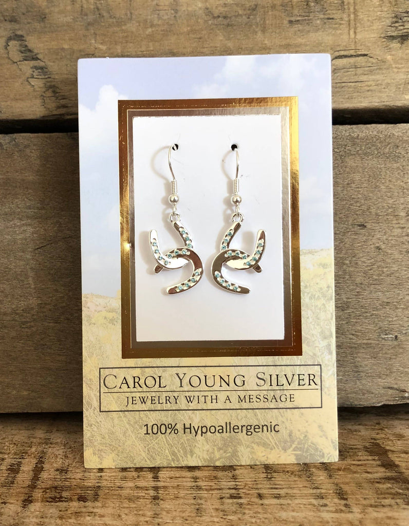 Horseshoe w/aqua crystals Earrings/Wire Jewelry