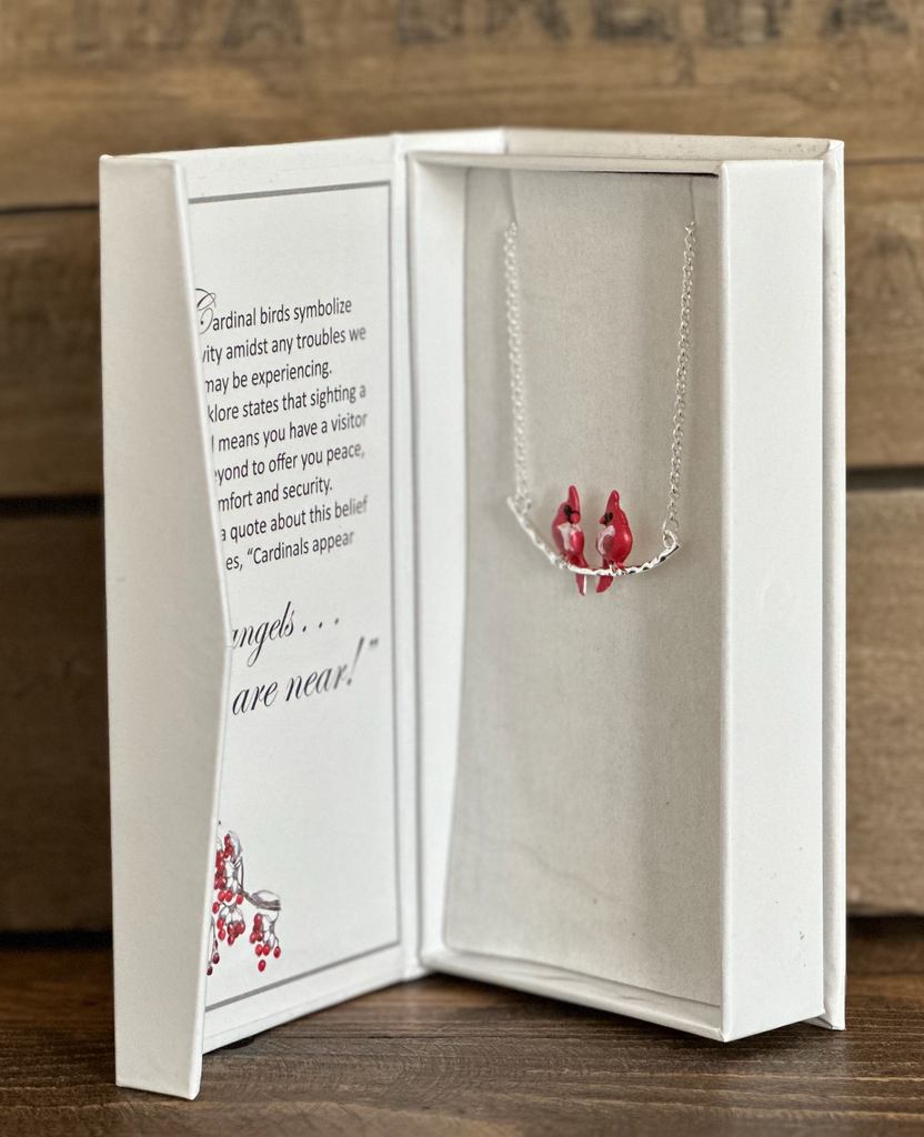 Cardinals/Two on a silver tone branch Jewelry Necklace