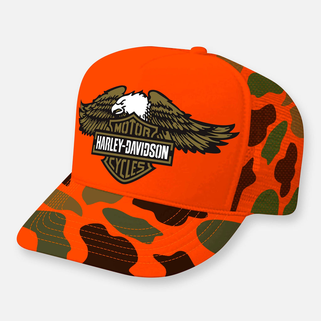 SCREAMIN EAGLE CURVED BILL HAT: Hunter Orange Camo