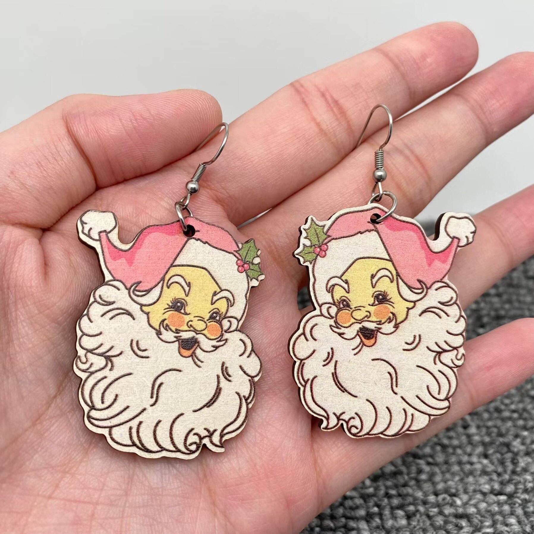Christmas Pink Santa Claus Wooden Dangle Earrings is backordered and will ship as soon as it is back in stock.
